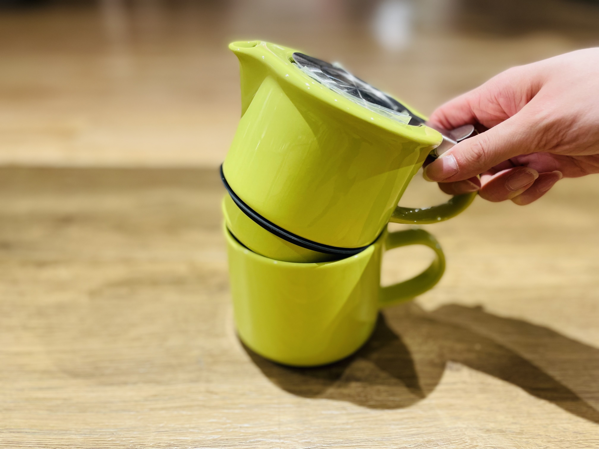 ・ティーフォーワン ティーポットとカップにステンレス製のインフューザーが一体化されシンプルにお茶 を楽しむためにデザインされています。 極上の紅茶はもちろんのことルイボスティーなどの細かいルーズリーフ、ウーロン茶 のような大きな葉っぱまで様々な種類の茶葉に対応しています。 税込み¥4,620